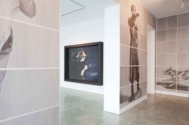 The six small-format photographs in the exhibition—the dimensions match the size of the original negatives produced by Mühe’s large-format camera—seem at first glance to present sublime Alpine panoramas and romantic forest scenes with captivating technical perfection. At a second glance, the composition and careful use of light guide the eye to men in uniform that are almost lost amid the nature. It takes even closer inspection to recognize that they are Nazis and, as their poses reveal, were emptying their bladders at the moment the pictures were taken. Mühe stages the ‘pissing Nazis’ as a nuisance in the idyllic landscape: they ignorantly pollute a pristine natural setting. Even now they refuse to enable a reinterpretation of the countryside near Berchtesgaden, symbolically holding on to it by brazenly marking it as their territory.